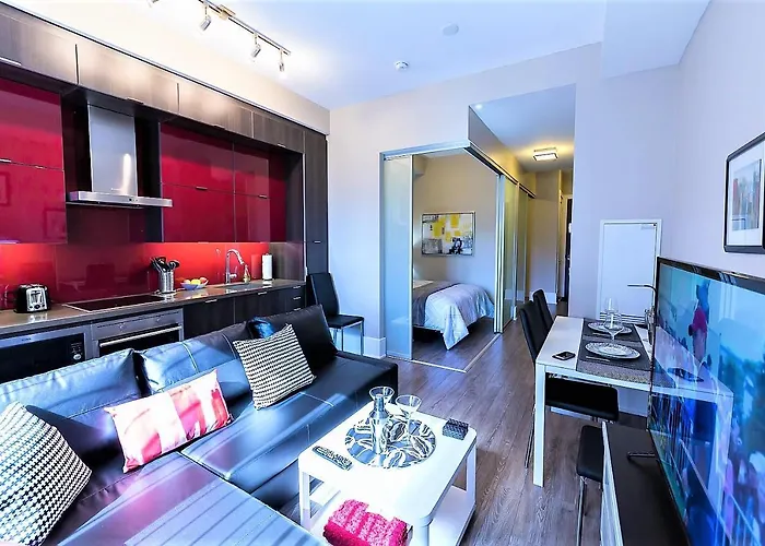 Gelegen im Unterhaltungs- Teil von Toronto gelegen, bietet die 46 m^2 großen Upscale Suite At Cn Tower, Metro Convention & Rogers Centre Toronto eine Terrasse mit Blick auf den Pool. Das Apartment befindet sich in nur 9 Gehminuten Entfernung vom Strand HTO Beach und bietet einem Dachpool.